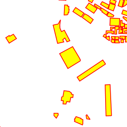 선택된 건물은 노란색 채우기와 빨간색 외곽선으로 표시됩니다.