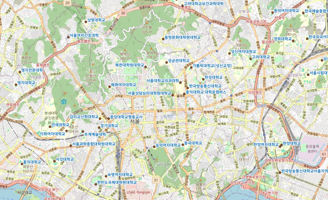 전국의 대학교 위치와 이름이 있는 데이터입니다.